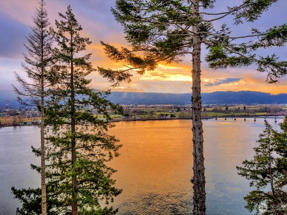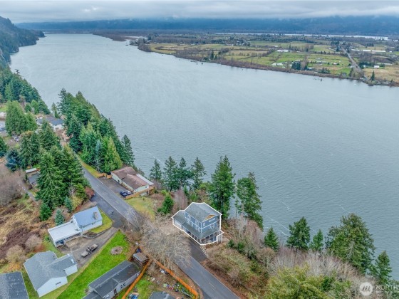 Experience luxury living in charming Cathlamet, WA, with spectacular views of the Columbia River, Puget Island, Oregon mountains & Puget Island bridge. This new home, nestled along the river, features 4 fireplaces, 5 bedrooms & 5 bathrooms, including two top-floor guest suites, each with its own kitchen & bathroom - perfect for Airbnb potential or multi-generational living. A beautiful custom kitchen showcases an abundance of quartz countertops & premium cabinetry. Enjoy cozy evenings in the mid-floor primary suite w/a walk-in closet & gas fireplace. The living room flows seamlessly into a library room, perfect for gathering or relaxing. French doors on each level open to extensive trex decking & breathtaking views. So many possibilities!