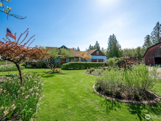 A rare 15-acre lifestyle estate where nature, design, and Northwest elegance come together. Centered around curated gardens and wooded surroundings, this property offers beauty, privacy, and connection to the land. The residence blends craftsmanship & warmth, featuring soaring ceilings, a gourmet kitchen w/ breakfast nook, & a copper-tiled sunroom that opens seamlessly to the gardens. The primary suite is a private retreat w/ fireplace, spa-like bath, & tranquil views. A guest cottage, powered barn, and flexible acreage allow for equestrian use, hobby farming, or multi-gen living. Bordering the 72-acre Fenton Nature Reserve, this estate offers trails, serenity, & a rare opportunity to live in harmony w/ the Pacific Northwest landscape.