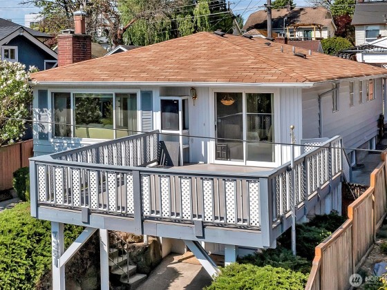 Live on top and rent below. 2 kitchens. The main floor of this home is set up for single level living with ramp access from the alley parking into the home. The primary bedroom has a private half bath and a Murphy bed. Seller preferred the larger bedroom that was once 2 rooms and could be converted back. The main floor bathroom also plays host to a washer and dryer. The gas fireplace plays center stage in the large living room. Stainless steel appliances and under cabinet lighting are a couple of the treats to be found in the kitchen. The basement level has its own laundry/bathroom and kitchen area for rental income or multigen living or whatever you like. The low maintenance outside has covered areas, composite decking and synthetic turf.