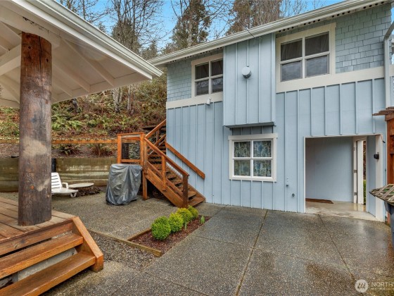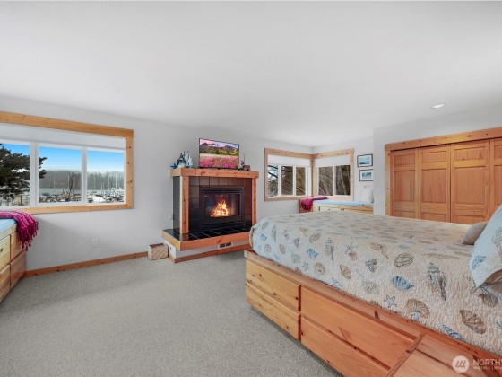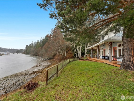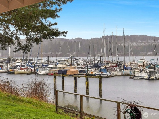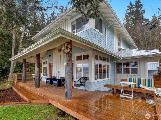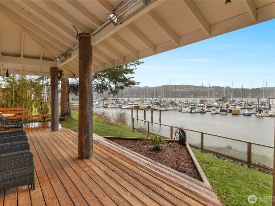 Beautiful & serene, this waterfront home is one of a kind situated right in the beautiful Port Ludlow Bay Marina. Beach life plus excellent potential for rental income, guests or multigenerational living. Apartment above detached garage offers private entry, kitchenette, living, sleeping area & bath. Main house features gorgeous open living space with exposed beams, knotty wood & giant stone fireplace. Step right out to the fabulous covered and heated deck. Cozy den with office space. Upper level boasts primary bedroom, w/ fireplace, spa tub, expansive views of Marina, plus additional bedroom & bath. Minutes to Port Ludlow Inn, Golf Club & Trails. STR allowed! Zoned MPR-RC/CF - Master Planned Resort - Resort Complex/Community Facilities.