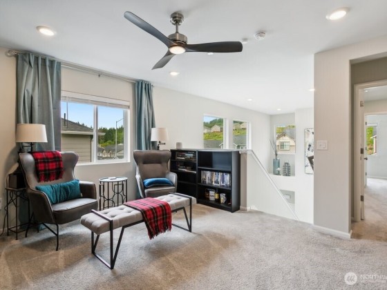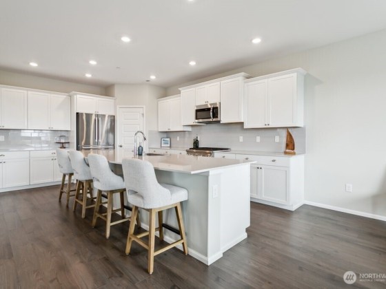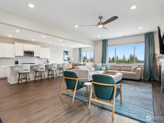Discover your dream home in Bremerton's sought-after West Hills! This stunning, move-in ready 2 story home features an open-concept layout with a spacious great room, a beautiful kitchen with a gorgeous tile backsplash and expansive island, and a dining area that opens to the backyard and covered patio. Upstairs offers a generous primary suite with a walk-in closet and en-suite bath with dual sinks and custom tile, plus three additional bedrooms, a versatile loft, and a convenient laundry room. Enjoy breathtaking views of Mt. Rainier, Mt. Baker, the Cascade Mountains, and the Seattle skyline—all with no rear neighbors and open space behind for added privacy.