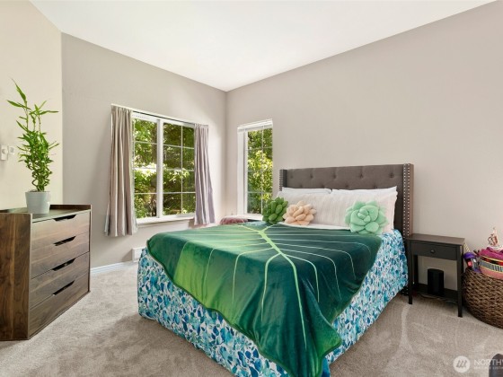 Woodland views & outstanding location for this move in ready 2 bed/1 bath condo. This top floor/end unit features an open concept floorplan w/spacious 9ft ceilings, new designer carpet & fresh paint. Gourmet kitchen w/granite counters, contemporary maple cabinets, SS appliances/new dishwasher. Large primary bedroom w/huge walk-in closet. In unit laundry w/full size W/D. Bath has been updated with a new toilet & bidet. Located at the back of the complex adjacent to the greenbelt. HOA amenities include a large inground pool, spa/hot tub area, and club house. Located near The Landing, Southcenter, IKEA, Costco, Uwajimaya, and more. Easy access to I-5/I-405. ** Seller will pay 3% or $9,000 towards buyer's closing costs with full price offer **