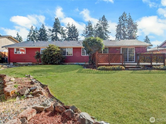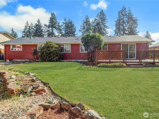 Welcome Home to This Wonderful Well Cared For Rambler in Brookdale. This Great Home Has 3 Bedrooms, 1.75 Baths, Nice Size Formal Living Room, Formal Dining Room & Family Room. Large Eat-In Kitchen w/Lot's of Cupboard Space, Stainless Appliances & Plenty of Room For The Chef! Brand NEW Paint Inside and Out. New Laminate Flooring, Newer Water Tank, Furnace Is 4 Years Old & Roof Is 3 Years Old. Primary Bedroom Has It's Own Bath, Wood Burning Fireplace For Those Cold Winter Nights & Large Deck For Entertaining. Extra Large 2 Car Garage & Shed For Your Lawn mower. Backyard Is Fully Fenced, Great For Pets & Large RV Parking Area. Close to Schools, Shopping, JBLM, Bus Line & Restaurants. Free Home One Year Warranty. Make Sure to See This One!