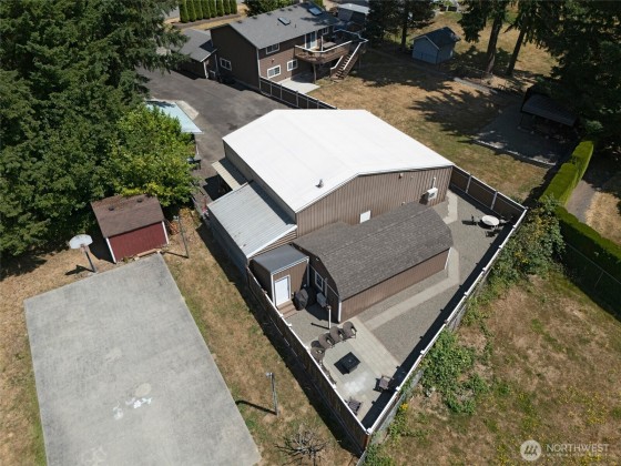Shop lover’s dream! A compound that offers unmatched versatility on expansive 20K sqft lot. The 2316 sqft split-level main home is complemented by a 550 sqft guest house/DADU, a 225 sqft ADU, and an attached 2-car garage, plenty of space for living, working, or hosting. Out back, the crown jewel awaits, a fully powered 1550 sqft shop complete w/offices, a half bath, and even its own paint booth, perfect for business, hobbies, or creative projects. A private walkway connects the shop to guest house/studio w/kitchen and bathroom, creating endless opportunities for multi-generational living or income potential. Huge backyard and upper-level deck off kitchen make entertaining a breeze. A rare find with staggering possibilities—don’t miss this!