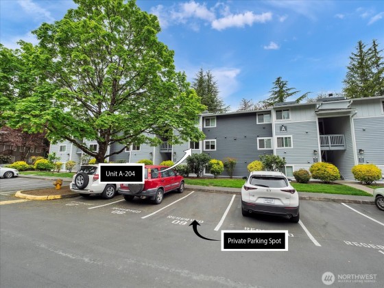 Welcome to this 2-bedroom, 2-bath condo nestled in the the heart of Woodinville. Located just minutes from downtown Woodinville's renowned wineries, shops, and dining, this updated second-floor unit features an open layout, cozy fireplace, private balcony, in-unit laundry, new carpet and quartz countertops. The spacious primary suite boasts a ensuite bath. Enjoy the convenience of reserved parking, ample guest spots, and a serene setting surrounded by evergreens. Enjoy the private clubhouse with sauna, pool, fitness center and racquetball . Easy access to I-405 and transit makes commuting a breeze!