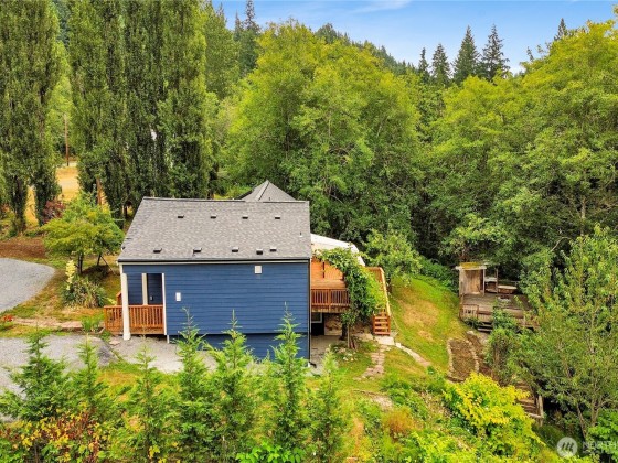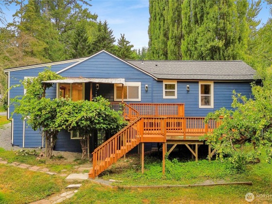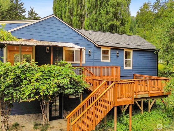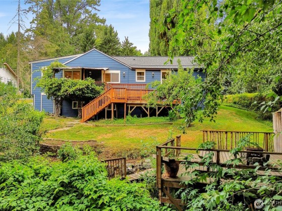 Southside Gem with park-like setting on just over 0.5 acre with scenic stream running through. Conveniently close to I-5,schools,parks, trails, and shopping. This updated home features beautiful maple floors, new roof, upgraded electrical, plumbing, and insulation.The open-kitchen boasts quartz countertops, a breakfast bar, separate large office or flex room along with 2 additional bedrooms and new stainless steel appliances.Two 3/4 bathrooms feature modern tile-surround showers.Energy efficiency with 2 ductless heat pumps, craftsman quality clear fir trim and doors and more! Relax or entertain on the expansive main deck or take in peaceful stream views from the observation deck.A rare combination of natural beauty and everyday convenience!