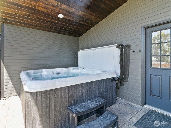 Beautifully remodeled 4-bedroom, 2-bathroom rambler in the desirable Renton Highlands! Step into a spacious living area featuring a cozy fireplace, flowing into a modern kitchen with stainless steel appliances, shaker cabinets, & a waterfall island. The layout offers two bedrooms up front, a larger third bedroom, & a luxurious primary suite with vaulted ceilings, walk-in closet, ensuite bath, & sliding door to your private covered patio. Relax in the hot tub, stay comfortable year-round with ductless heating & cooling, & enjoy energy savings w/solar panels. The backyard includes a large powered shed and an EV charging for added convenience. Currently an income-producing short-term rental. Come see this incredible home & all it has to offer!