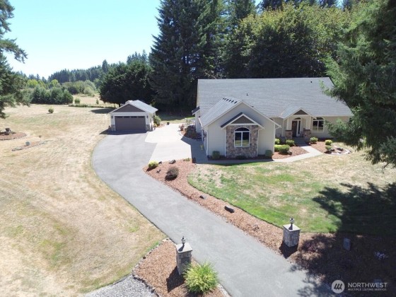 Escape to your private custom oasis on 2.5 acres! This stunning 3,354 SF custom home offers elegance and tranquility at the end of a peaceful cul-de-sac. The property boasts manicured landscaping, a gazebo, and a welcoming covered entry. Inside, soaring 20+ ft ceilings and sun-filled rooms create a seamless, airy flow for entertaining and comfort. The main floor features a luxurious primary suite with a spa-inspired bath, jetted tub, and a large walk-in closet. A versatile den/office converts to a guest room, while two additional bedrooms share a Jack & Jill bath. With engineered hardwood and tile floors and a whole-house generator, this custom retreat offers ultimate peace of mind and inspired living amidst beautiful, pristine acreage.