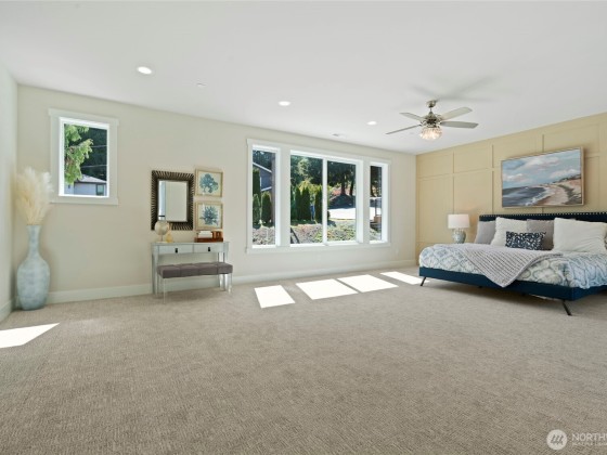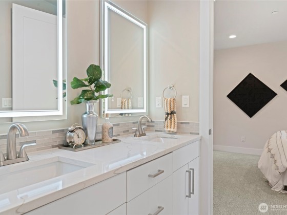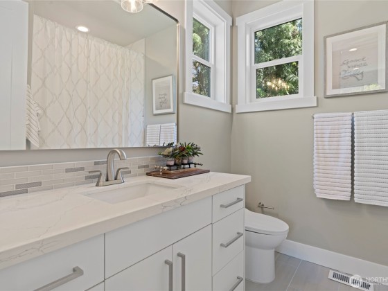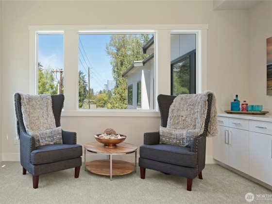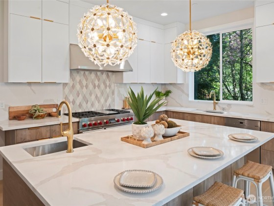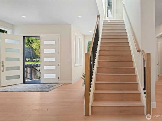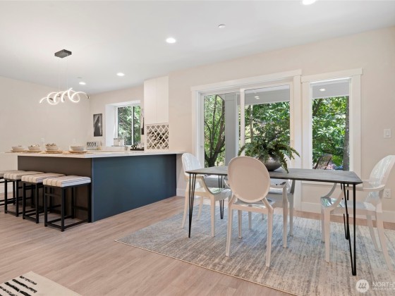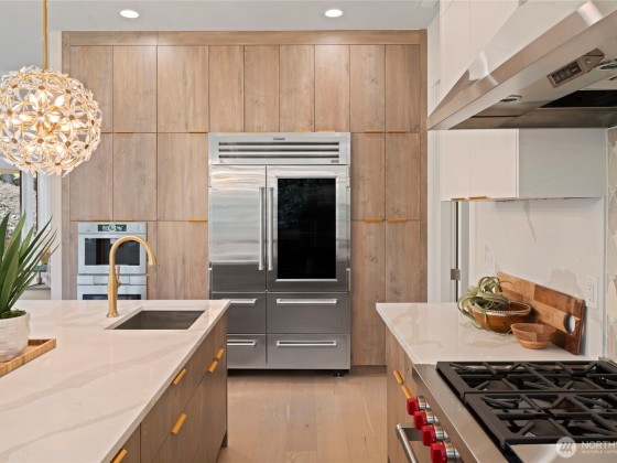 This custom-designed 5,900 sqft luxury residence is located steps from vibrant old downtown Bellevue. The chef's kitchen is a culinary masterpiece with top-of-the-line Subzero & Wolf appliances, perfect for year-round hosting. The dining room flows seamlessly into the living room and the covered patio, which features heaters and a stone fireplace. The glamorous primary suite offers a breathtaking view of the city and includes a sitting room, stunning en-suite bath, and walk-in closet. Spacious bedrooms, extra storage, and a large mudroom with a second W/D. The daylight basement features a wet bar & fireplace, along with a second patio, all conveniently designed for rest or entertainment! Live conveniently in Bellevue's heart!