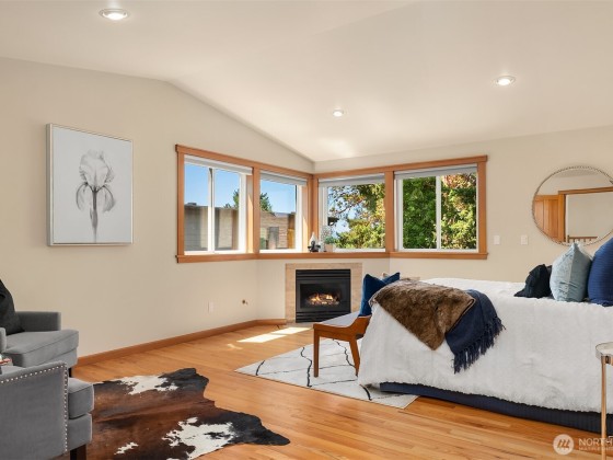 Peace and quiet Highly sought-after Houghton, this exceptional Kirkland home blends luxury, light & livability. Thoughtfully designed w/kitchen-level garage, welcoming covered porch & sunlit great room wrapped in windows. The chef’s kitchen features granite counters, mostly Miele appliances, gas cooktop, walk-in pantry & bar seating. 3 bedrooms up w/hardwoods, including the primary sanctuary tucked into its own wing with sitting area, fireplace, soaking tub & walk-in closet. Lower level offers guest suite, rec room w/wet bar & fridge, spa room w/infrared sauna for 2. Easily a MIL/ADU w/separate entry. AC, hardwoods in most rooms, grassy yard, fruit trees, blueberry bushes & jasmine blooms. Walk to parks, trails, cafés, Google & Met Market.