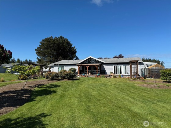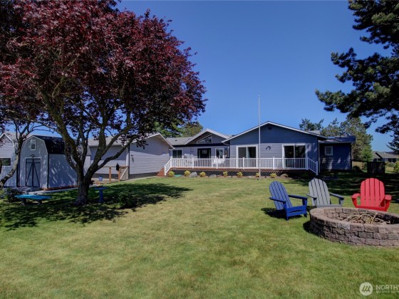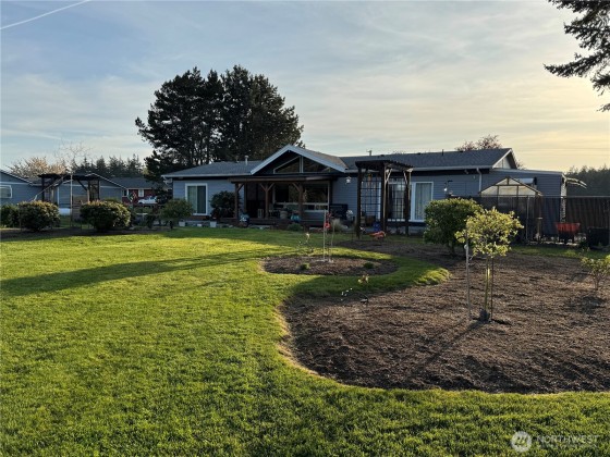 MOTIVATED SELLER! A rare blend of beauty, space, and privacy—this well-kept rambler on nearly an acre sits at the end of a quiet cul-de-sac with just one neighbor, surrounded by open space and peaceful views. Warm and inviting, the sun-filled open floor plan features vaulted ceilings, skylights, and a cozy gas fireplace. Chef’s kitchen with granite, SS appliances, and island flows easily for gatherings. Primary suite with heated bath floors and walk-in closets; bonus room with private entry suits guests, a shop, or an office. Expansive yards give you plenty of elbow room. Finished garage and storage sheds. Deck and firepit invite outdoor living. Mountain/partial water views, A/C, heatpump. HOA fee is for Scenic Heights water Association.