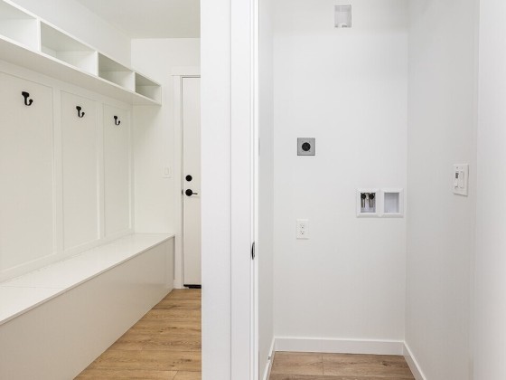 Sophisticated stand-alone home showcasing designer finishes & private western-facing yard w/ alley access & off-street parking. The main floor offers airy, open living w/durable luxury vinyl plank flooring, custom mudroom nook, & chef’s kitchen w/ farm sink, pantry, bar seating & built-in buffet w/floating shelves. A powder room, defined dining area, access to an expansive deck & abundant storage elevate functionality. Upstairs 2 spacious en suites impress w/heated floors, double sinks, marble accents, and striking tilework. With mini-split heating/cooling and refined lighting, this Meadowbrook residence blends modern elegance w/ everyday luxury—like a serene treehouse in the city. Alley access for extra parking for boat/trailer or vehicle!