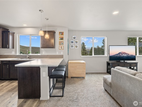 Experience breathtaking views from this nearly new home, perfectly designed for comfort and convenience. Featuring a spacious open layout, 2 bedrooms, and 1 bathroom, this home is also pre-wired for a generator—ideal for any season. The expansive 3-car garage features 9-foot doors, insulation, sheetrock, & paint. Sitting above the garage, the home provides sweeping views of the lake, canal, ridgeline, & wildlife. Ready to move in, this home is ideal for full-time living or a weekend retreat. Enjoy the amenities of Sunlight Waters, including stocked lakes for fishing & kayaking, a community pool, & a clubhouse. Conveniently located just off I-90, with easy access to Ellensburg and Cle Elum, plus HOA snow removal for year-round comfort.