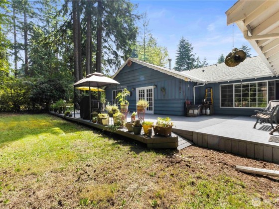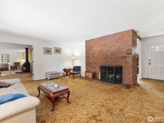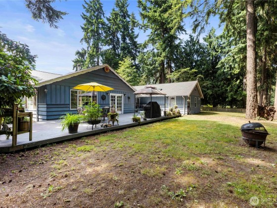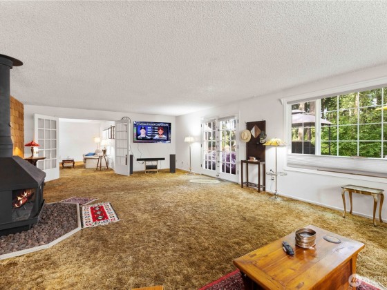 $10,000 Buyer credit! Large one level home on just under a half acre lot. Very private back yard surrounded with mature trees. Enjoy this 800 square foot trex decking off the back side of the home. French doors lead to the primary bedroom with cathedral ceilings, bathroom cabinets have granite countertops and travertine tile floors and surrounding the soaking tub. Big walk in shower with granite walls. One other large bedroom, and a office/ den with a walk in closet. Dining room off the kitchen with fireplace. Spacious living room with another fireplace. Family room is very large as well with a free standing wood burning stove. Septic RSS complete, new panel box, HVAC serviced. Close to amenities but feels very quiet and private.