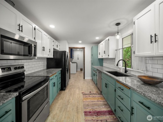 Remodeled 3 bedroom, 2 bath home with charming open concept living room and wood burning stove in the heart of Cashmere. Spacious kitchen, dining room, two bedrooms and a bathroom upstairs. Separate entrance for lower level with full kitchen, living space, full bathroom, sleeping area & lots of storage. Laundry room both upstairs and downstairs. Great home for multi-generational living, or rent out downstairs while living upstairs. Private backyard with shop and creek. The PERFECT location just around the corner from the city swimming pool, tennis courts and school play fields.