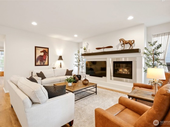 Welcome to this beautifully designed 4-bedroom, 3.5-bath home in the desirable McCormick Woods community of Port Orchard. The open-concept main floor showcases a spacious living area with a gas fireplace and 8ft sliding doors leading to a covered deck and fully fenced yard. The gourmet kitchen features quartz counters, a large island, stainless steel appliances, and a walk-in pantry conveniently located next to the mudroom. A main-level office with French doors offers versatile use. Upstairs, enjoy a bonus room perfect for entertainment or work. The luxurious primary suite includes a spa-like 5-piece bath and walk-in closet. Complete with air conditioning and a 4-car garage, and close to parks, golf, dining, and Hwy-16 access.
