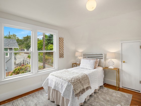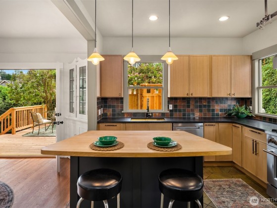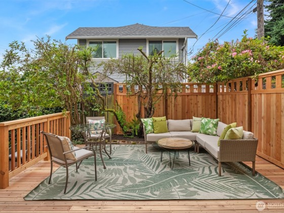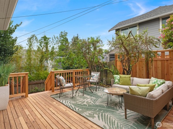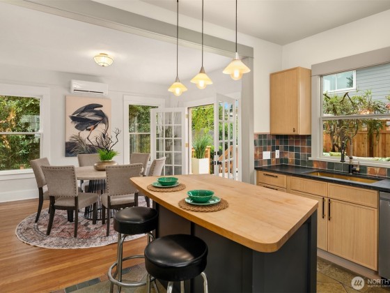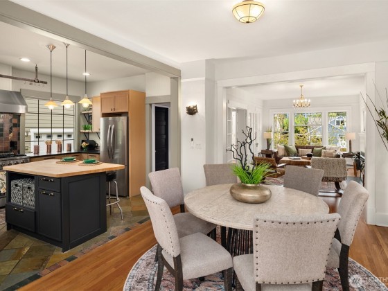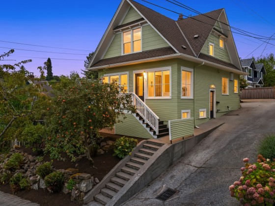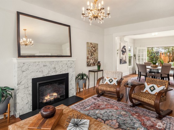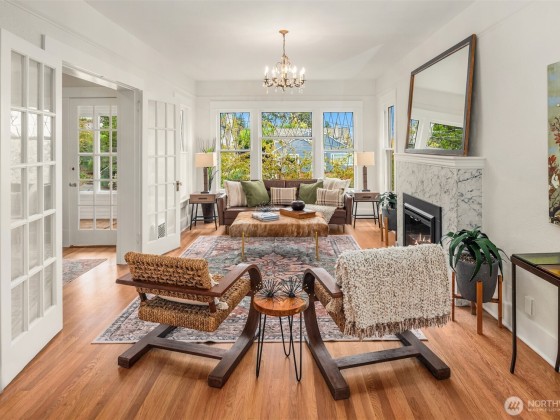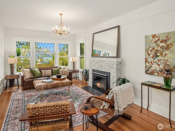 1st time on in 34 yrs! This 2025 remdeld foundation-up period QA Craftsman is off the St for added lite, privacy & views steps from Rodgers Park, Coe elem, gourmet restrnts, bakeries & boutiques in this sought after oasis just minutes walk to Amazon, SLU, Climate Pledge and worlds tech core w/out sacrificing prvcy! Sunporch open to a frml entry offers gleaming true fir/oak flrs under soaring ceilings thru the LR w/its designer marble FP, open DR unfolds into a new gourmet kit befitting true epicurean standards w/hand-crftd cabs, solid slab cntrs, stone flrs, centerpiece island & top SS appls evoking your inner Anthony Bourdain! Frnch drs extend the living space to a dining deck! New designer bths, roof, sewer, heat a/c & guest suite/4th Br