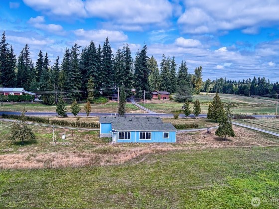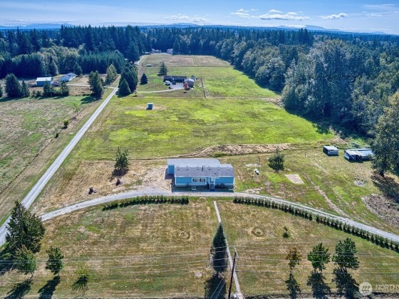 Charming single story home on 4.73 Acres. Welcome to this peaceful country retreat just minutes from I-5.Golf and the Canadian border! Nestled on a spacious flat lot, this 1992 manufactured home offers 3 bedrooms, 2 bathrooms, and a huge bonus room perfect for a home office, playroom, or entertainment space. Enjoy the bounty of the land with 80 established blueberry bushes, pear and and a chicken coop. Private water well. The property is partially fenced, ideal for horses or expanding your hobby farm dreams. Outdoor living is a dream here with a covered parking area, plenty of room for RVs, toys, pool, and BBQ gatherings. There’s space to breathe, play, and grow whether you're looking to garden, raise animals, or simply enjoy rural life.