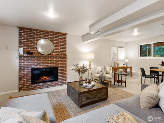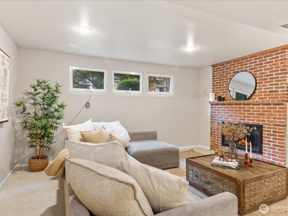 Amazing Seaview neighborhood, this home is located on a corner lot, quiet/double dead-end street. The kitchen/dining area overlooks the newer Trex deck & large serene and wooded back yard. Living area/library with vaulted ceiling and cozy stone fireplace. 3 beds, full hallway bath and primary suite with attached 3/4 bath complete the upper floor. Downstairs is an oversized family room perfect for media/game area. Updated baths with heated floors. Generous attached 2 car garage with storage. Seaview has abundant local parks and trails. Newer roof, brand new carpet and interior paint. Minutes to shopping, beaches, trains, restaurants, galleries and all Edmonds has to offer.