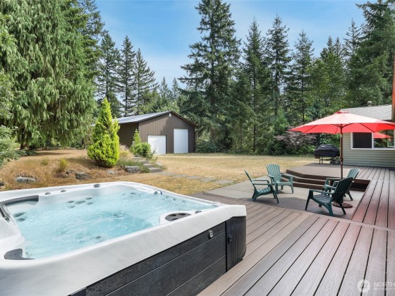 Rare Opportunity in North Maple Valley w/updated Rambler on Acreage w/ Shop! Beautiful rambler that perfectly blends mid-century charm w/ modern finishes on a spacious & usable lot. Inside, find a tastefully remodeled interior featuring an new kitchen & baths w/ sleek quartz countertops, warm colors. Light & bright living area, plus lg primary w/ ensuite bath & 2 more spacious beds. Outside, find a 700 sq ft Trex deck, ideal for entertaining or relaxing in the stunning hot tub. Plus a 2,400 sq ft shop, equipped w/ multiple oversized doors, zoned LED lighting, & 50-amp RV hookup—perfect for hobbies, storage, or home-based business. Tahoma School District & ez commute from North Maple Valley. No HOA & new septic system being installed.