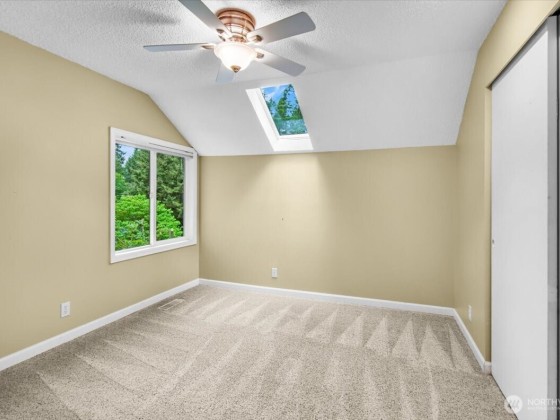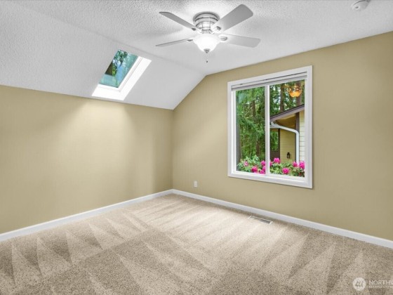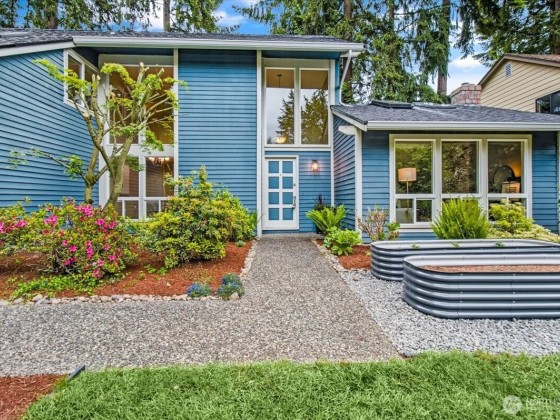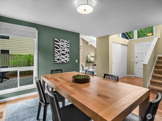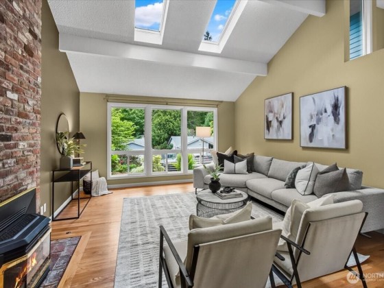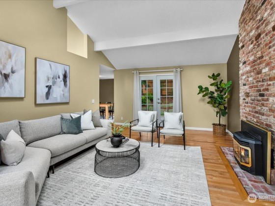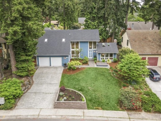 Fantastic 4 bedroom home on a quiet, dead end street in Kirkland’s sought-after community of High Woodlands. Vaulted ceilings with walls of windows and skylights flood this floorplan with natural lighting. Hardwood flooring throughout main floor featuring gracious Living and Dining rooms plus unique eating space off kitchen. French doors with level walk out to rear patio. 4 bedrooms up including primary suite with walk-in closet. 2 car attached garage w craft/flex rm. New roof in 2024. Fully fenced with private, low maintenance yard. Trail leads to private neighborhood pool, park, & tennis courts. Close to Wineries, Totem Lake Mall, Evergreen hospital, and easy freeway access.