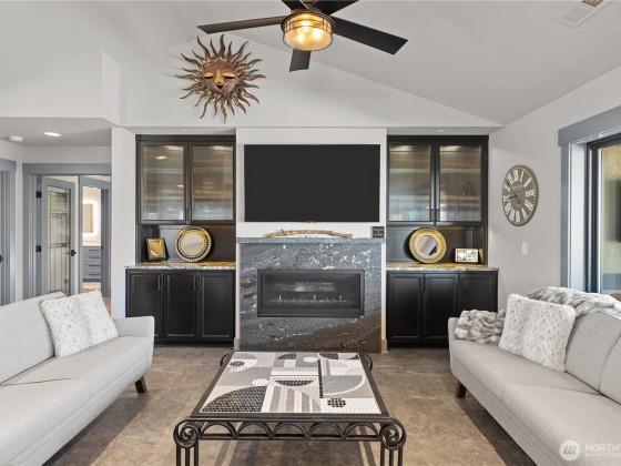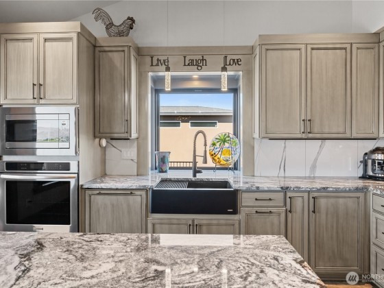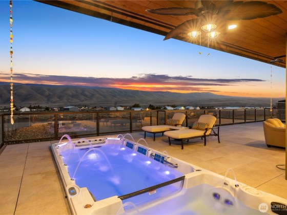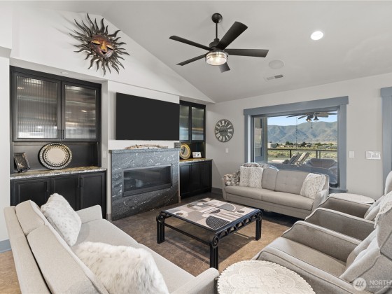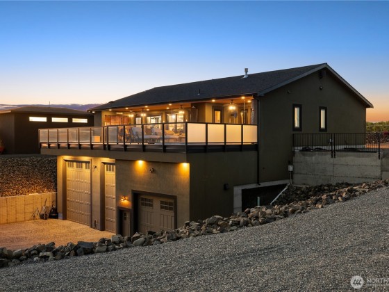 Experience luxury living in Desert Aire on a .61-acre lot with breathtaking views of the Columbia River, mountains, golf course, and airstrip. This 2,210 sf home features a massive 1,868 sf attached shop with two 50 foot bays + a 32 foot bay, heated tile floors, new carpet, built-ins, and vaulted ceilings. Dream kitchen with granite countertops, Sub-Zero fridge, warming oven, and an oversized island for seating & storage. This open floor plan is perfect for entertaining! Primary offers deck access, walk-in closet, & stunning private bath. Enjoy your oversized covered porch with cooling misters, swim spa, & Alexa-controlled lighting. There are 3 RV hookups, security cameras, speaker system, & garage drains for year-round car washing as well!