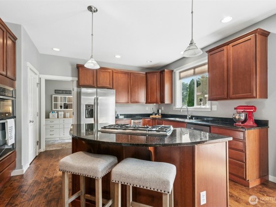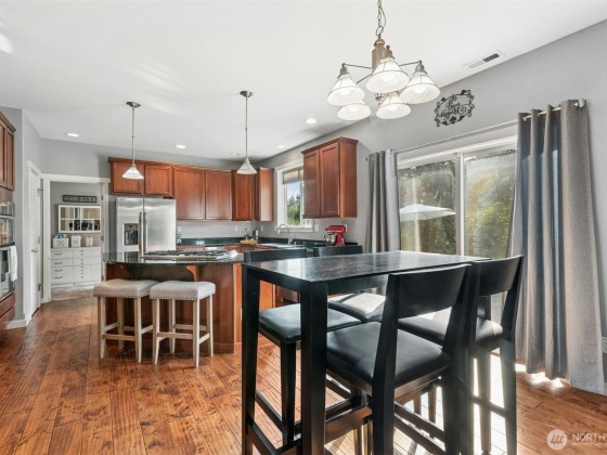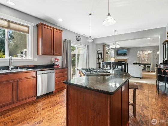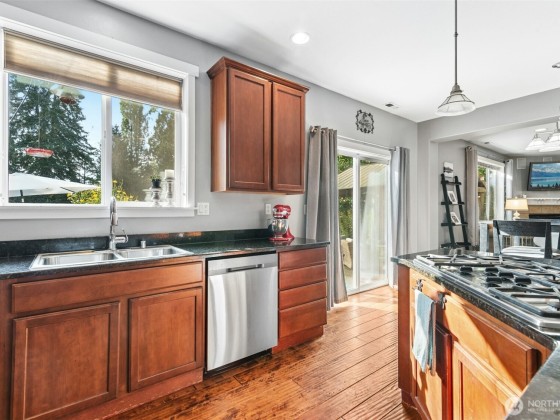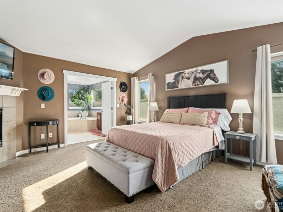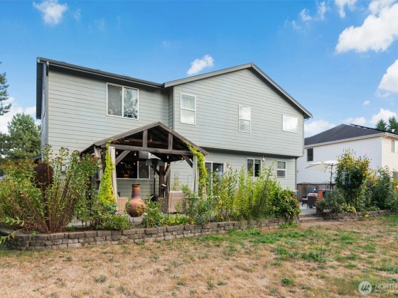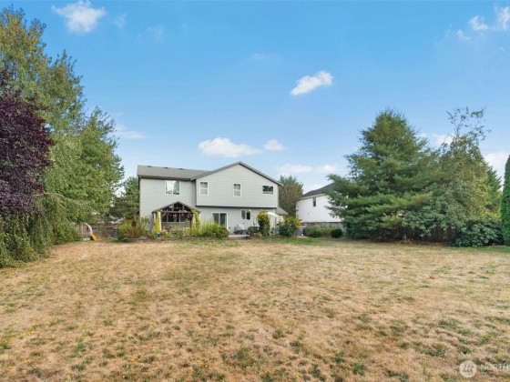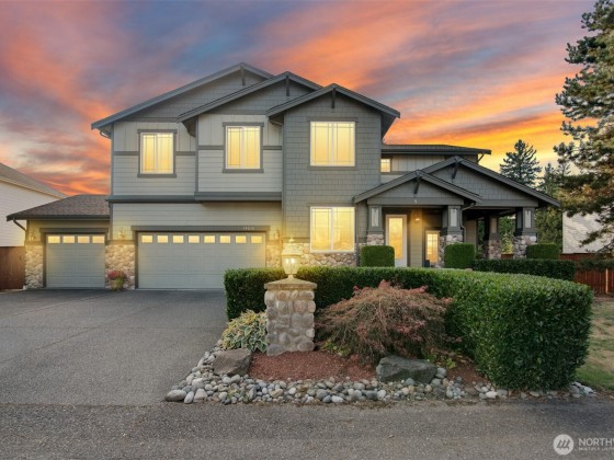 *4 BEDROOM, DEN & BONUS ROOM* resting on a spacious 1/2 acre, blending refined comfort with everyday convenience. Inside, thoughtfully designed living spaces, rich wood floors, plush carpet & soaring ceilings. A generous entry to greet guests, a home office then a spacious dining room as you enter. Relax in the fabulous family rm by the cozy gas fireplace or play chef in the fully equipped, gourmet kitchen. The upper level leads you to the primary suite with vaulted ceilings, a romantic fireplace plus a 5 piece, spa inspired bath. 3 more bedrooms, a full bath and a big bonus room with a projector to finish off the upstairs. Outside, expansive grounds invite gatherings, play, or peaceful evenings surrounded by the natural beauty of the PNW!