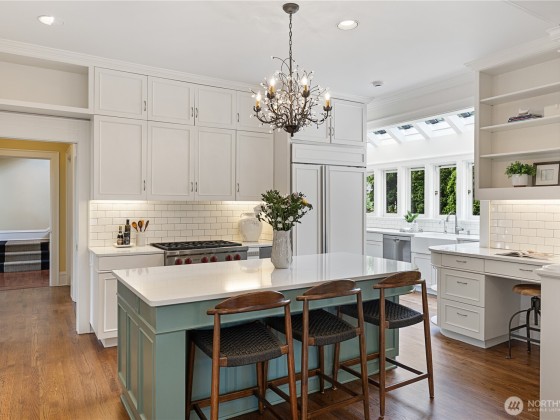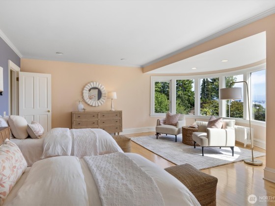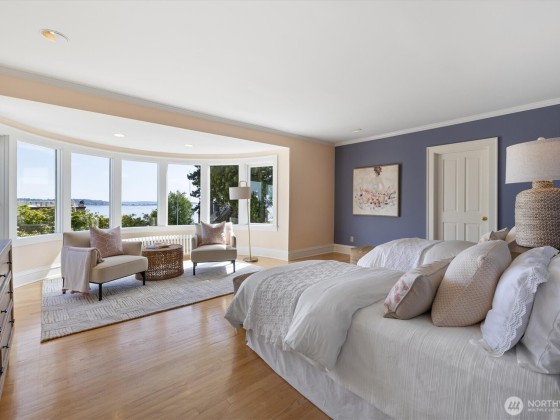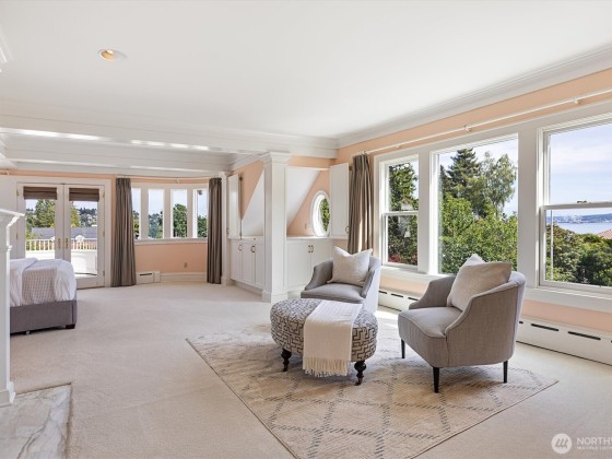 A true legacy home. This estate has been beautifully restored and updated with modern amenities. Surrounded by curved windows and ever-changing vistas, the light-filled rooms flow seamlessly for entertaining and intimate gatherings. Spacious, double-ensuite primary bedroom and generously sized additional bedrooms upstairs. 180-degree views of Seattle skyline, Elliot Bay, and majestic Mount Rainier on the horizon. Fully renovated lower level includes all new mechanicals, spa room, designer kitchenette with Subzero appliances and top of the line theater and game room. A rare blend of heritage and coveted location, this remarkable home is not only a piece of Seattle’s history, but also a front-row seat to its most iconic scenery.