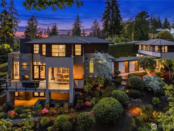 Experience unmatched luxury & global sophistication in West Bellevue—an architectural masterpiece by Bender Custom Homes. Nestled on over three-quarters of an acre, this modern estate features clean lines & premium materials such as metal, bluestone, cherry, & mahogany. Towering floor-to-ceiling windows frame stunning western sunsets, while the covered outdoor living area invites year-round enjoyment & entertaining. Thoughtfully designed for comfort & leisure, the property includes a lush private garden, 4 hole putting green & a detached guest house for added flexibility. Located in one of Bellevue’s most coveted neighborhoods, it offers seamless access to world-class dining, shopping, & amenities.