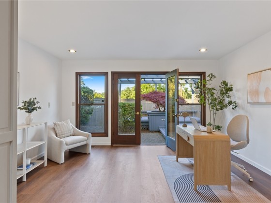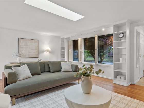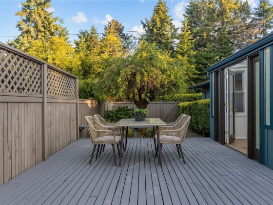 Beautifully updated traditional rambler with brand new engineered-wood floor, new paint inside and out, and timeless New England charm. Spacious 1,000+ sq ft private deck runs the length of the home—perfect for entertaining or relaxing with a view of the golf course, outdoor sprinkler system just installed. Granite kitchen counters, two fireplaces, and inviting living spaces throughout. Primary suite features a wall of closets, jetted tub, dual shower heads, heated floors, and private courtyard access. Flexible floor plan with office/optional 4th bedroom. Located in one of the Eastside’s most desirable neighborhoods—close to top schools, parks, Bellevue, and Seattle. Move-in ready with modern comfort and classic appeal!