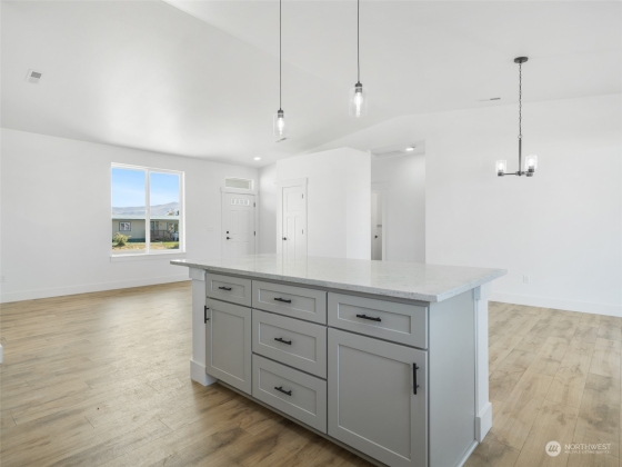 MOTIVATED SELLER BRING OFFERS!! Welcome to your dream home in Desert Aire! New construction with home warranty included, offering 1,491 SF of living space, 3 beds, 2 baths, attached 2-car fully insulated garage, and it's backed up to a 12ft greenbelt for privacy. Features luxury vinyl plank hardwoods, vaulted 9ft ceilings, designer fixtures throughout, smart mirrors in the bathrooms, solid core doors, and an updated HVAC system. Open floor plan a great room feel & a kitchen offering large, useful center island, stainless appliances, & granite countertops. Primary suite with walk-in closet & private bath as well. Enjoy the amenities including Golf course, airfield, community pool and park, tennis courts, gym, walking trails & boat launch!