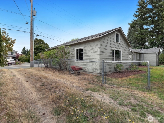 Full of heart and history, this 1937 Craftsman bungalow welcomes you with light, warmth, & character. Original fir floors, built-in buffet, & glass-front cabinets add personality - while the large kitchen & bright living spaces invite connection. Upon entry, the open space is flexible & bright while the two bedrooms, den, updated bath, A/C & mudroom offer everyday ease. You will appreciate the many places you can store your belongings. Outside, enjoy the large fenced corner lot, covered patio for entertaining, & 2-car garage with shop or DADU potential. Over $15k of recent work including new roof, clean sewer & more. This cheerful Gregory Heights gem is close to shops, restaurants, parks, schools, hospital, and freeway. Pre-inspected.
