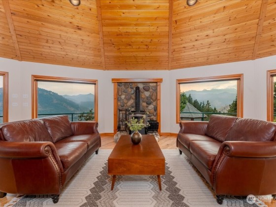 Perched atop your own ridge, this extraordinary home offers complete privacy and panoramic beauty in every direction. Completely renovated custom home leaving no surface untouched. Beautiful pine & groove ceilings, rich hardwood floors, & modern upgrades throughout, including a refreshed kitchen with quartz countertops. Enjoy 360 views of Mt. Cashmere, the Enchantments, Wenatchee River, and more! A remarkable 1,230 sqft, 6-car capacity detached shop with car lift boasts 400 amp power & all the bells and whistles. Detached designer 1-bedroom/1-bath ADU with roll-up garage doors to take in the view, plus a 18x32 metal garage for toys. Landscaped walkways, a gazebo, & 24 acres of serene surroundings make this a truly one-of-a-kind retreat.