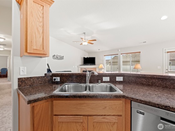 Fantastic home with open floor plan and many special features inside and outside. The great room has vaulted ceiling, gas fireplace and a spacious island with the step-up counter top feature. The kitchen was custom designed with a full wall of beautiful cabinets. Plus there is a walk-in pantry. What great storage! The primary bathroom ensuite has an easy care walk-in tub plus a separate shower. You will love this corner lot and the fenced backyard. Concrete curbing, rain gutters, vinyl fencing all point to a very well cared for, loved home. Call today!