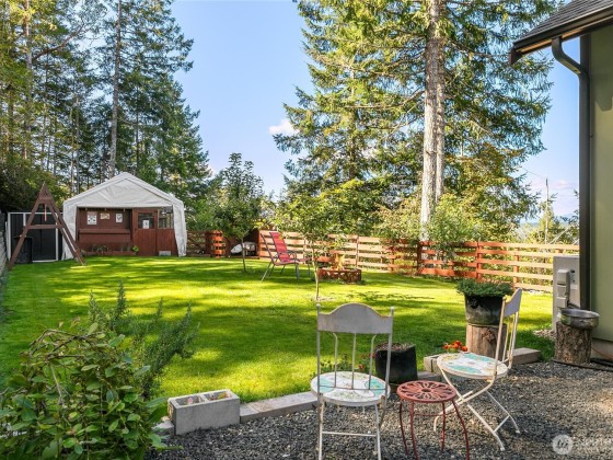 Enjoy an amazing 180-degree view of the mountains & canal from this 1-acre hillside estate. This warm villa features tall windows that illuminate the great room, with a cozy wood-burning fireplace. Kitchen boasts beautiful quartz countertops, farm sink & high-end appliances. Dining area features French doors leading to an expansive, partially covered deck & hot tub. Primary suite opens to the deck & includes a lrg shower & walk-in closet. Laundry/mud is equipped with a dog bath. Half bath & custom cabinets & insulated floor in the lower-level entrance basement. Level fenced backyard features fruit trees, greenhouse & hobby farmer's shelter & chicken coop. The ever-changing views are a year-round delight in this 3-yr-old custom-built home.