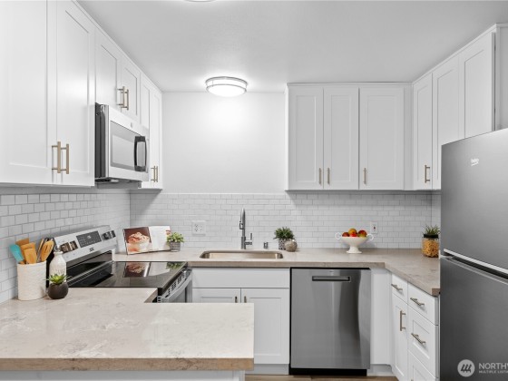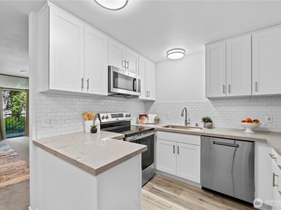 Experience relaxed living and modern updates in this beautifully maintained Redmond condo. The interior features fresh paint, new carpet, modern lighting & updated finishes throughout. The kitchen is equipped with quartz counters, stainless steel appliances & sleek cabinetry. Enjoy peekaboo views of Swan Lake from the bedroom & relax on your private patio surrounded by greenery. No rental cap adds strong investment potential & no special assessments. Residents have access to resort-style amenities including a lake, gym, trails, four pools, sauna, clubhouse, cocktail lounge, game room, athletic courts & pea patches. Includes a private carport with storage & is just minutes from Redmond, Kirkland & Bellevue!