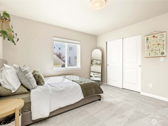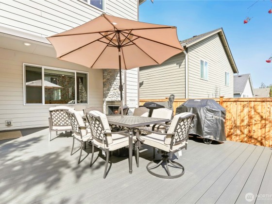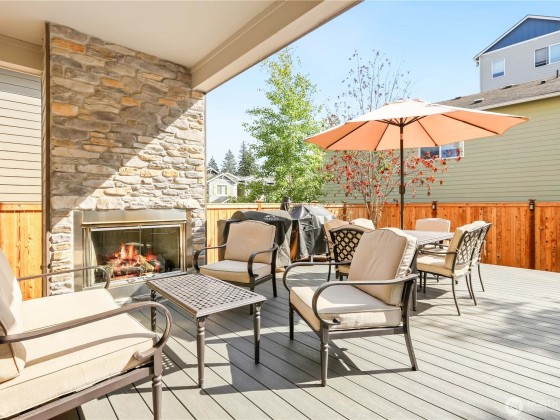 Modern design meets everyday ease in this light-filled 4 bd home. Expansive windows invite sunshine across the open main floor, where laminate wood floors flow through generous living spaces anchored by a cozy gas FP. The kitchen is a delight w/quartz counters, SS appls, dbl oven, & ample storage. Upstairs offers 4 bd, a versatile loft, & convenient laundry. The primary ste feels like a retreat & spa-inspired ba. New carpet & fresh paint give a like-new feel, while upgrades include a custom mantle, A/C, & energy-efficient gas systems. A covered Trex deck w/gas FP sets the stage for gatherings. Complete w/2-car gar+EV charger, wireless extenders for strong connectivity, & nearby neighborhood park, this home blends comfort & convenience.