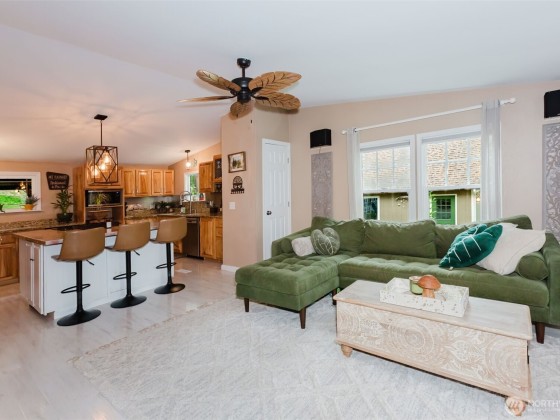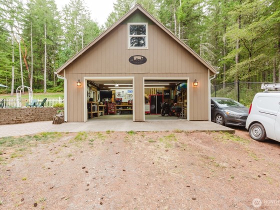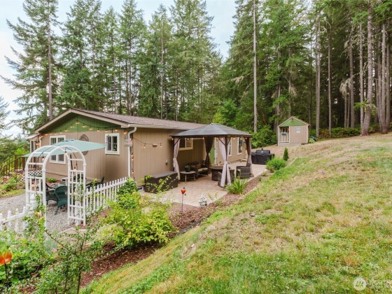 Welcome to your beautiful oasis! This home has been thoughtfully updated with a new roof (2020), fresh interior & exterior paint, new doors, & updated kitchen lighting, as well as organizers & pullout shelving in most every cabinet. Step outside to a spacious patio perfect for entertaining, a thriving veggie garden, & a partially fenced yard with room to play or relax. The oversized garage offers attic storage, a built-in workbench, & plenty of room for vehicles or projects. Additional highlights include a shed, newer gutters, & a cleared lot with fully usable space. Nestled on a quiet country road, this property offers privacy with convenience—just 15 mins to PSNS & 30 mins to Tacoma.