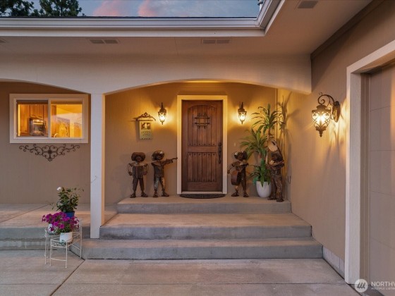 Overlooking open acreage and the Spokane Polo Club, this special property captures the views and feeling of being on your own secluded rural escape while being conveniently located on a private lot near all city amenities. Wonderfully landscaped and designed exterior living areas take advantage of the natural surroundings and views to Mount Spokane from your covered deck. Step inside and the open living areas are perfect for entertaining and still capture the views through walls of windows. The Primary Bedroom is ensuite with separate shower and garden tub, walk in closet, and quick access to the covered deck to enjoy sunrise. Two additional bedrooms and a bath in the daylight walkout basement. Ext hardscapes and maintained garden areas!