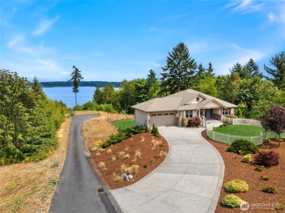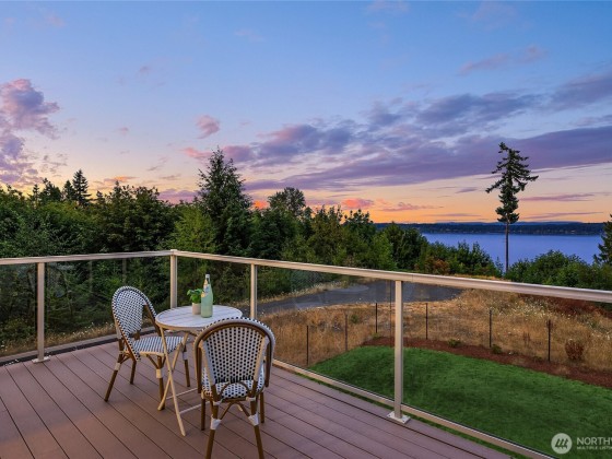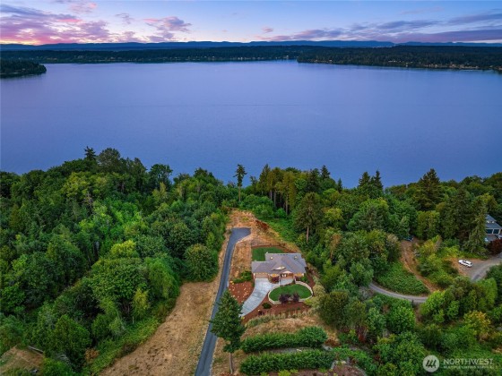 Stunning private high-bank view property, includes 1.55 ac. waterfront vacant lot w/ water + power at site. 150' of waterfront & panoramic views of Puget Sound & the Cascades. Located at the end of a quiet/private paved drive. Ideal for multi-generational living w/ a spacious main-level primary suite, chef’s kitchen, formal dining, + open deck for entertaining. Features include cherry floors/cabinetry, slab granite countertops, SS appliances, and A/C. This home has been impeccably maintained with thoughtful and custom updates. Spacious downstairs level offers flex space with two bedrooms w/ ample storage. Front and back yards are fully fenced. Close drive to Bremerton, Kingston & Bainbridge ferries. Close proximity to St. Michaels Hospital.