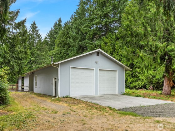 Nestled in a tranquil country setting, this gorgeous 9-acre retreat offers peaceful living just minutes from Key Center! This charming one story home boasts vaulted ceilings that bring in beautiful natural light. Enjoy fresh fruit from your orchard and stroll the meandering trails throughout the property. Your animals can stretch out in the barn with two oversized stalls, complete with a fully insulated and heated tack room. A 30x36 ft shop is ideal for the car enthusiast or has ample room to store all your recreational toys. Work from home in your detached bonus space or use as playroom. Perfect for a hobby farm or bring the dirt bikes and quads. Set far back from the highway, you can relish the seclusion of your personal sanctuary.