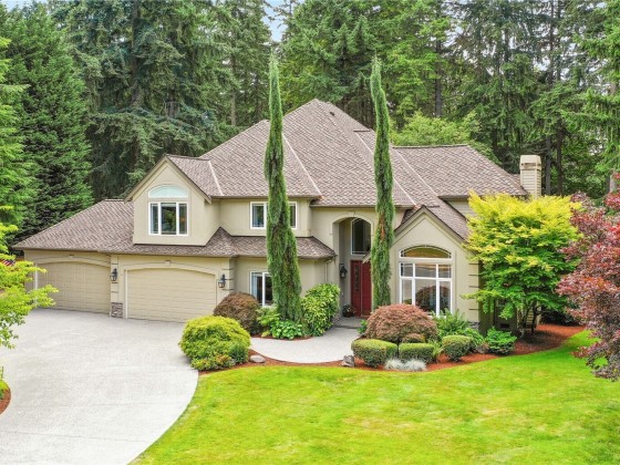 Stunning home on beautifully landscaped 1-acre parcel in lovely Summit at Highland. The main level offers a living room, dining room, kitchen with island and coffee bar that is open to family room, office and bonus room. A sweeping staircase leads to 4 bedrooms including a primary suite with attached bath and walk-in closet, a guest suite with attached bath, and spacious secondary bedrooms. Quality upgrades include Anderson windows, 50-year Presidential roof, circular drive, and 4-car garage. The park-like backyard features a pergola-covered deck with radiant heat and gas-piped BBQ, covered 8’ Jacuzzi hot tub, large patio, gazebo, walking trails, water features, garden shed and mature landscaping, all backs to 50’ greenbelt. Must see!