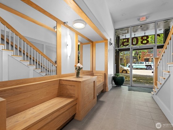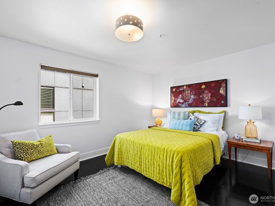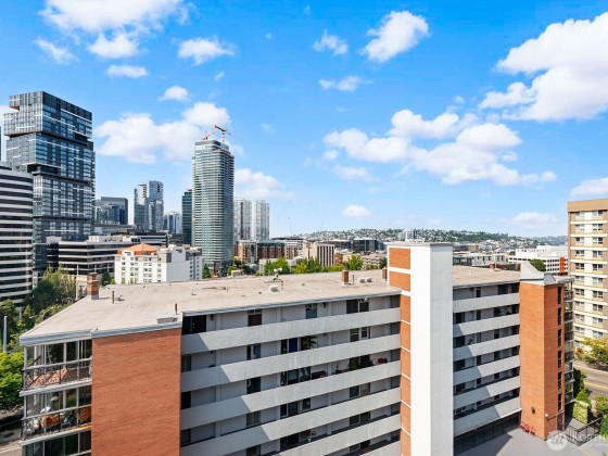 This is the penthouse life, the top floor pinnacle! Sweeping city views - 180+ degrees of Seattle grandeur. Perfectly perched on Capitol Hill's west bank for wonderful walkable access to all city attractions, amenities, and nightlife. Floor to ceiling windows in living and dining adjoin large covered patio where you can take ALL of it in. Breathtaking! Beautifully updated interiors, polished concrete floors and fresh paint throughout. Kitchen has granite counters and gas cooking. Private primary suite features glamorous tiled bath with skylight. In-unit laundry. Two deeded parking spaces in garage. Two large deeded storage spaces. Roof top deck and fully fenced grounds. Efficiently managed boutique building with high owner occupancy.