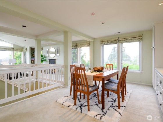 Set high above the street to maximize privacy and views of Mt Rainier, downtown, Alki, and the Olympics, this reverse-floorplan home is full of lovely details. The top floor has an European feel, with a cathedral ceiling, an antique fireplace, a soapstone kitchen island counter, and a spacious dining room, plus a bedroom/office. There is a dumbwaiter! The entry level is currently being remodeled to create two mid-sized. bedrooms (in addition to the primary and 2 bathrooms). The lowest level has a 3rd fireplace and garage access. Enchanting, fully-fenced backyard has a fruit bearing apple tree. New furnace, appliances, and roof since 2020. Electrical and plumbing upgraded. Express buses nearby to d/t, UW, various hospitals and colleges.
