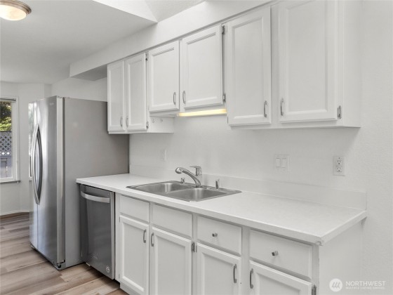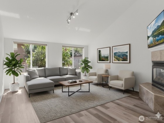 Welcome to your new home on Olympia's desirable Westside! This beautifully updated 3-bedroom, 2-bath residence offers a perfect blend of comfort and style. Step inside to an airy, open layout with vaulted ceilings, oversized windows, and skylights that fill the space with natural light. The spacious living area, complete with a cozy gas fireplace, is perfect for relaxing or entertaining.The primary suite is a true retreat, featuring a large walk-in closet and a private ensuite bath. Recent upgrades include new floors, toilets, and door hardware, plus a fresh coat of paint throughout. Outside, you'll find a serene, low-maintenance yard with a private front patio and a large deck in the fully fenced backyard—ideal for outdoor enjoyment.