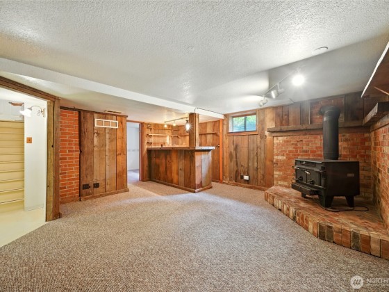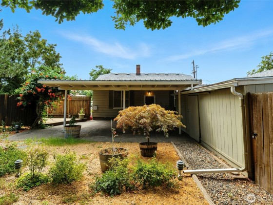 Refreshed laundry room.. Pictures are worth a thousand words…Street appeal and beautiful! Smaller 3 BR, 1 BA home just waiting for you on a larger lot. Family Room in basement includes a wet bar, w/sink and 2 refrigerators, and a cozy woodburning stove. Basement bedroom window is not up to current code. Partially fenced yard back yard with a large covered patio, storage shed, garden space, private wood deck, and access to alley where there is additional parking. The property has a LOT of potential parking. Hardwood flooring adds to the charm of this home. Newer windows and furnace. Take a look for yourself and see this amazing home and it could be yours!!! This home is a CHARMER!! Property has a “dry well” septic system.