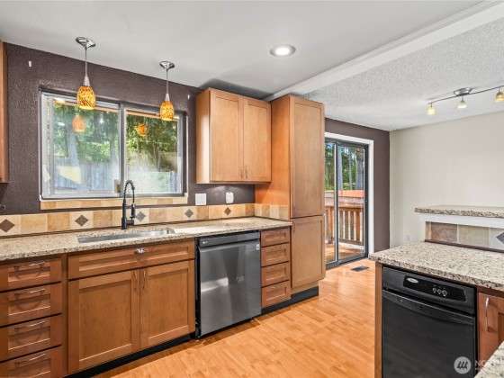 Beautifully Updated 3 Bed/2.25 Bath Home on Nearly ¼ Acre! Experience comfort, style, & generous living space inside & out. Updated kitchen boasts granite counters, modern appliances, & open layout that flows into the dining area & inviting living room w/ a cozy fireplace. Spacious primary suite w/ attached bath + 2 add'l bedrooms upstairs. Move in ready with fresh interior paint & new flooring throughout. Central A/C! Huge family room in lower level with 2nd fireplace, a laundry area with half bath, & backyard access. Enjoy outdoor living on decks at both the front & back of the home + a large fenced backyard. 2 car garage for add'l storage. Ideally located near parks, shopping, freeways, & within the desirable Puyallup School District!