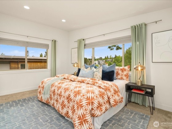 $20k BUYER CREDIT! BUY YOUR RATE DOWN! 4-bed, 3.5-bath home in Hillman City, just south of Columbia City. This contemporary design features three floors with 9' ceilings and oversized windows for abundant natural light. The exterior boasts custom landscaping, a large patio, and a spacious side yard. Parking is easy with a 2-car garage and additional space. Inside, the main floor includes a great room and a chef's kitchen with a gas range and pantry. A generous balcony offers low-maintenance enjoyment. Upstairs, find three bedrooms, including a primary suite with a walk-in closet and luxurious en-suite bath. The lower level features a fourth bedroom with a murphy bed, a full bath, and a flexible space. All on a private lane - a must see!