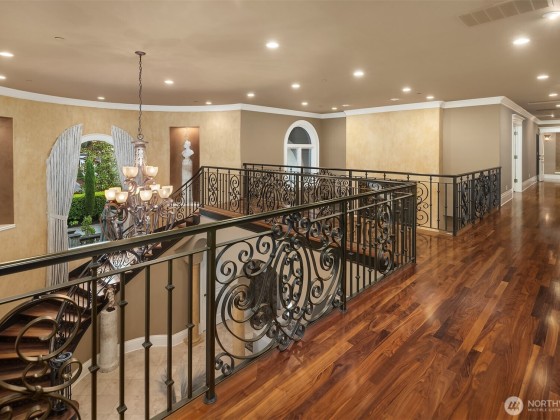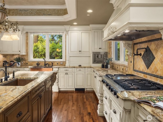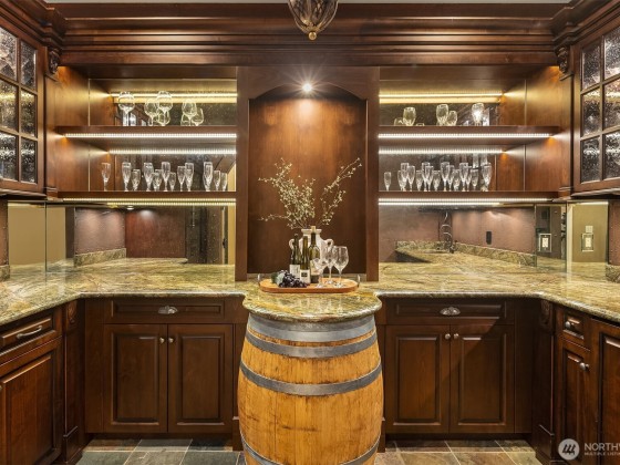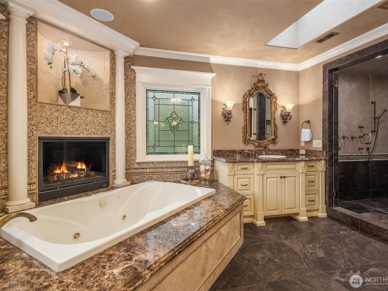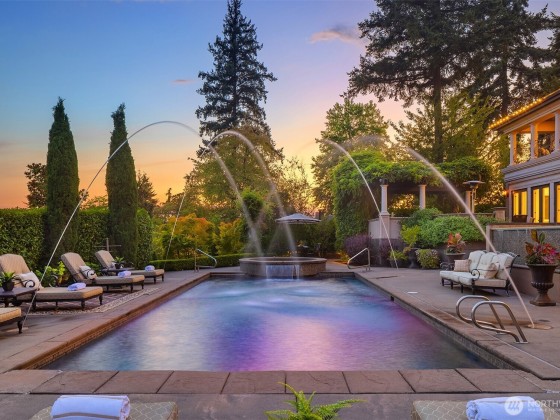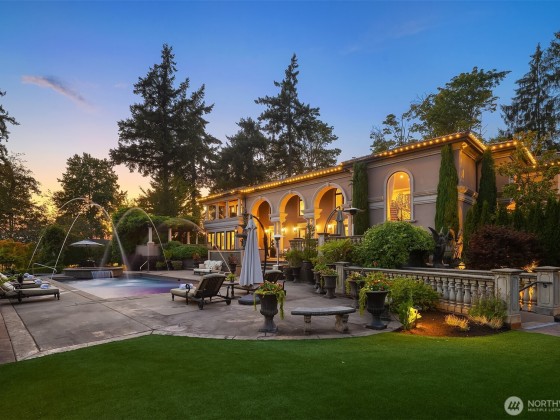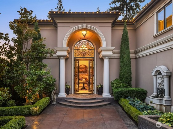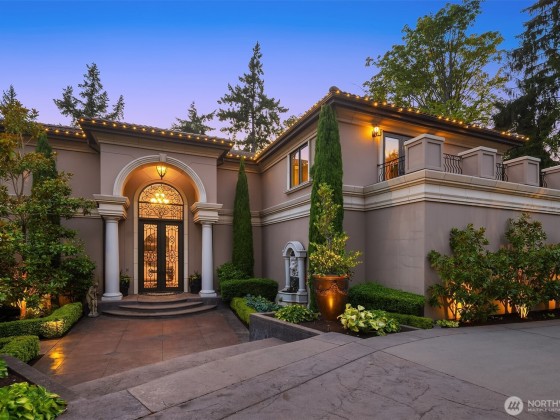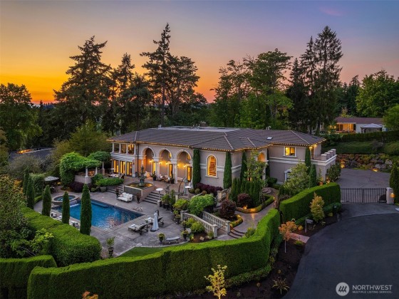 Modern Italian elegance in prestigious Clyde Hill. Inspired by Tuscan villas, this 7,481 sq. ft. estate blends timeless charm w/Pacific Northwest luxury on gated half-acre. Designed w/entertaining in mind, this luxurious home features 5 spacious bedrooms, each w/private en-suite. Grand gourmet kitchen anchored by massive granite island, custom cabinetry surrounds luxury-grade appliances, butler pantry for ease of entertaining. Luxurious primary suite w/wet-bar, private balcony, spa bath & steam shower, & designer closets. Formal & casual living spaces, 2 offices, game room, wine bar, & gym. $800K+ in outdoor renovations to enhance resort-style pool, spa, firepit, outdoor kitchen, 3/4 bath. A rare legacy estate: luxury, privacy, and style.