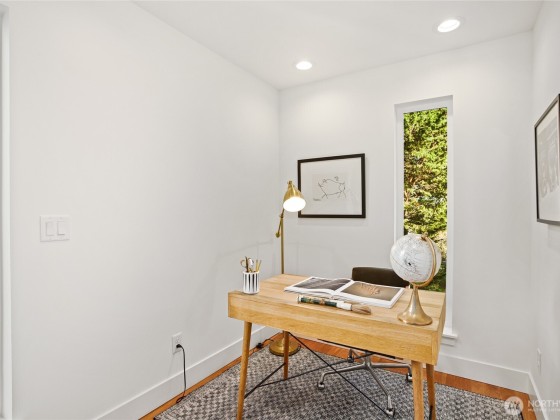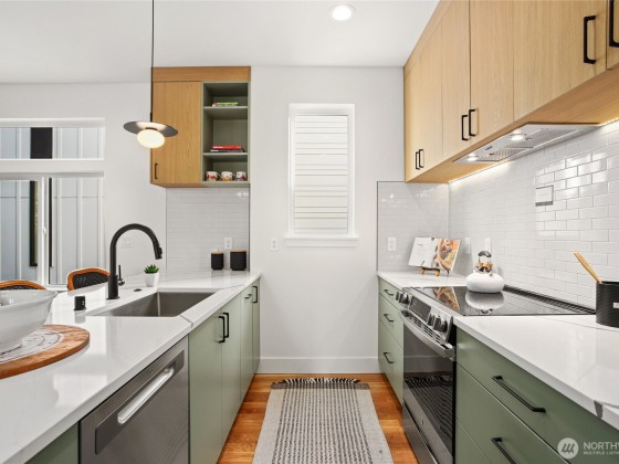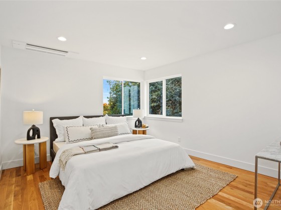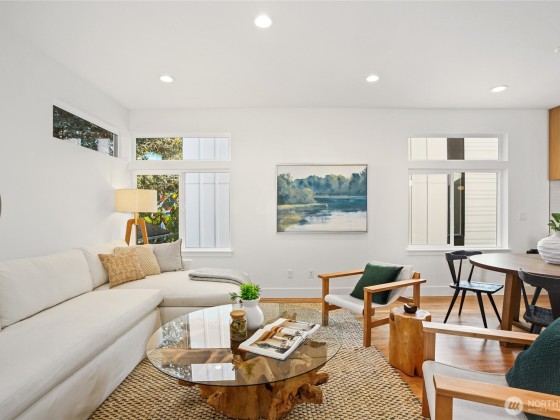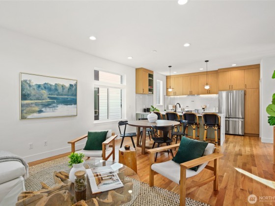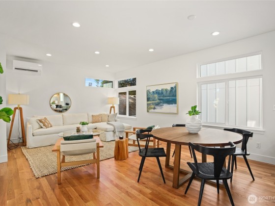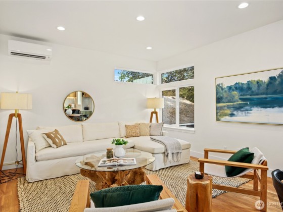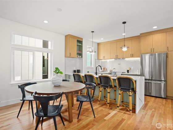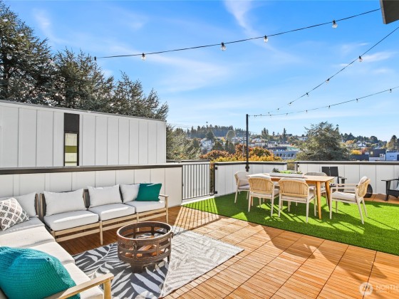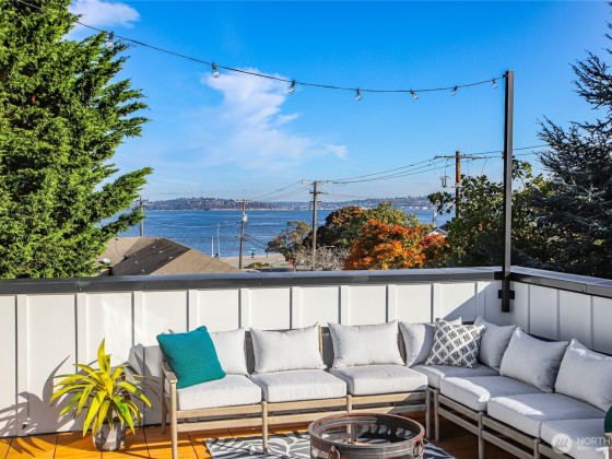 Welcome to Alki one of Seattle's most vibrant neighborhoods. Upper Left Living has built an exceptional new home paying attention to every detail. This home has it all - location, spacious rooms, amazing light, high end designer finishes, office area, fenced yard and private rooftop deck w/ Sound, Mtn & territorial views. The home features a luxury primary suite w/mini split A/C, luxury bathrm w/ designer tile, heated floors, double vanity, curb less shower with heated floors & walk-in closet. Spacious kitchen with all the chef's touches, under counter lighting, stainless appliances, walk-in pantry and prep island/eating bar. Main floor dining, powder rm, White Oak hard wds throughout & designated parking, E-car ready. No HOA dues.